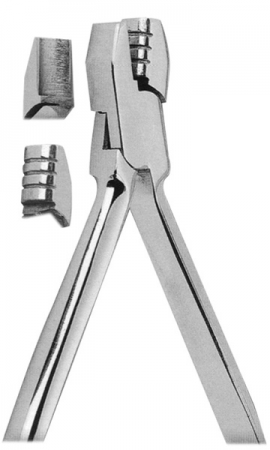 De La Rosa arch forming pliers. Designed to form and contour arch wires on round or rectangular wire. The beak has grooved of 0.4mm. (016') 0.46mm. (018') and 0.56mm. (022').