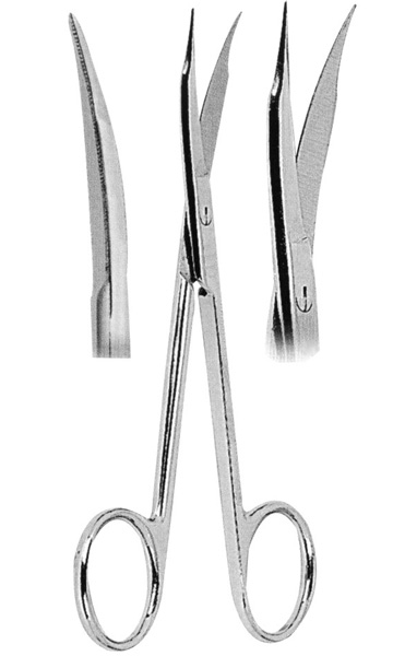 Curved, one blade serrated